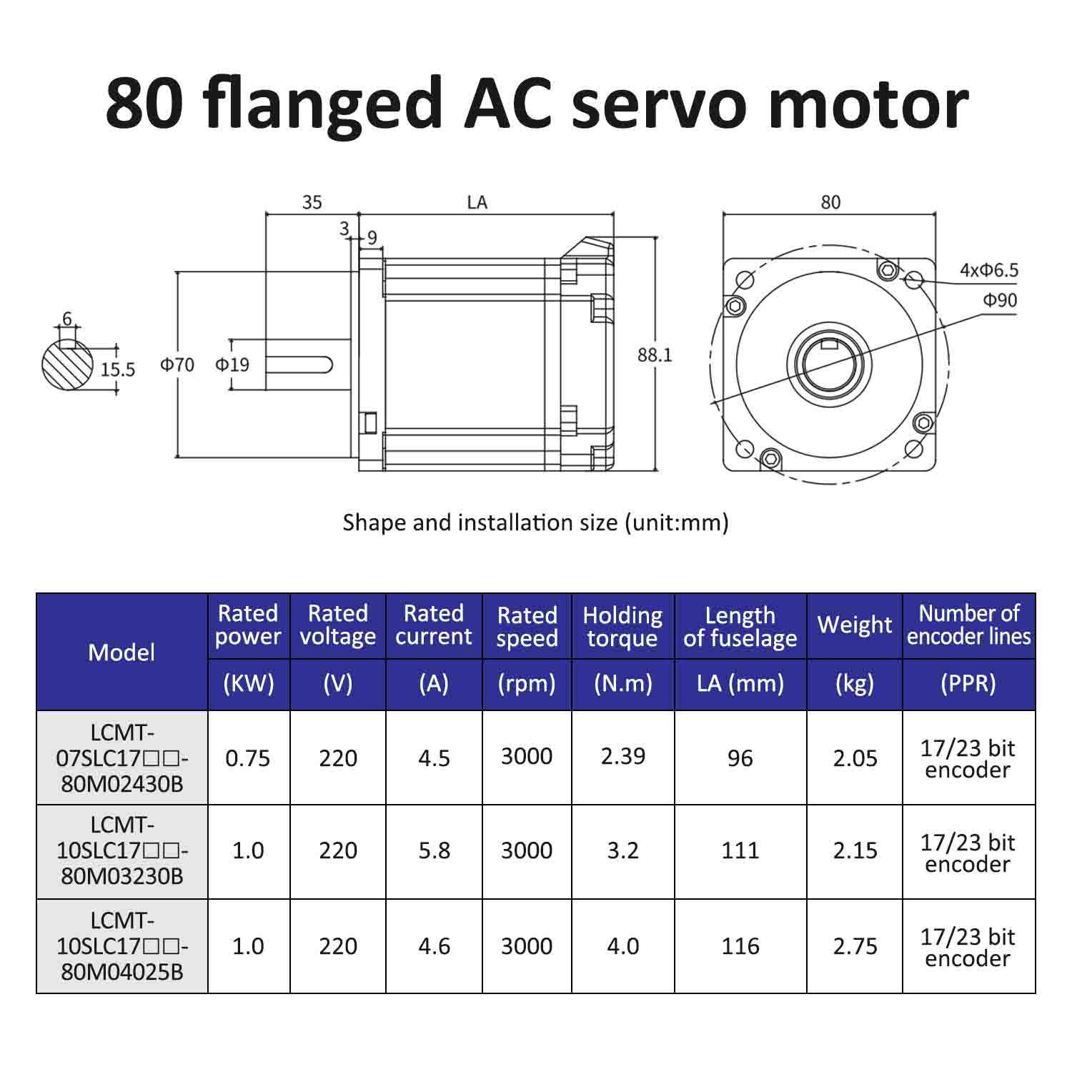 | Moottorin malli | LCMT-07SLC17-80M02430B | LCMT-10SLC17-80M03230B | LCMT-10SLC17-80M04025B |
