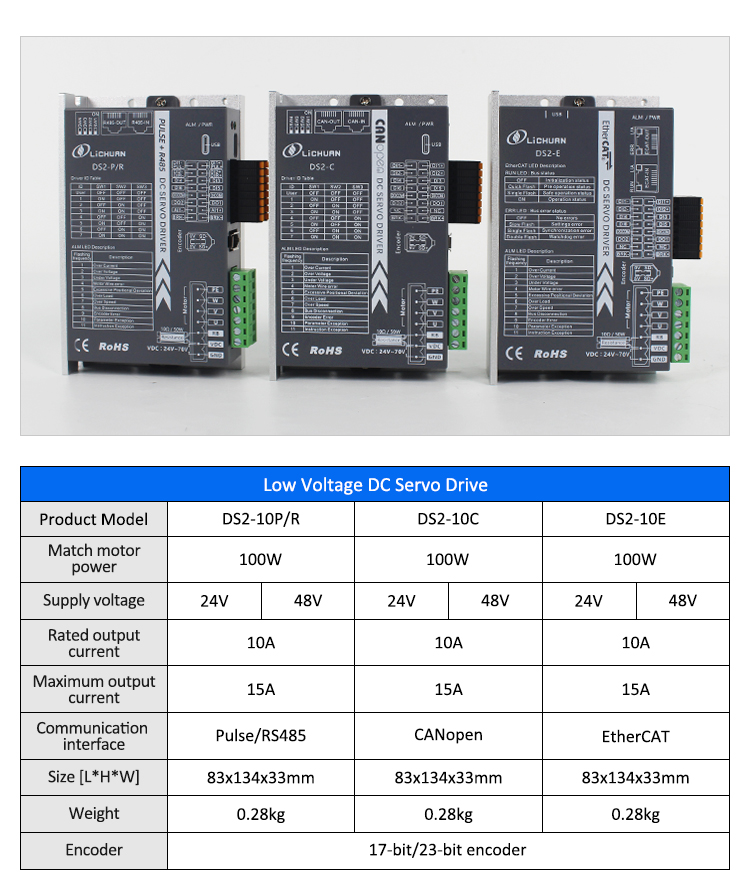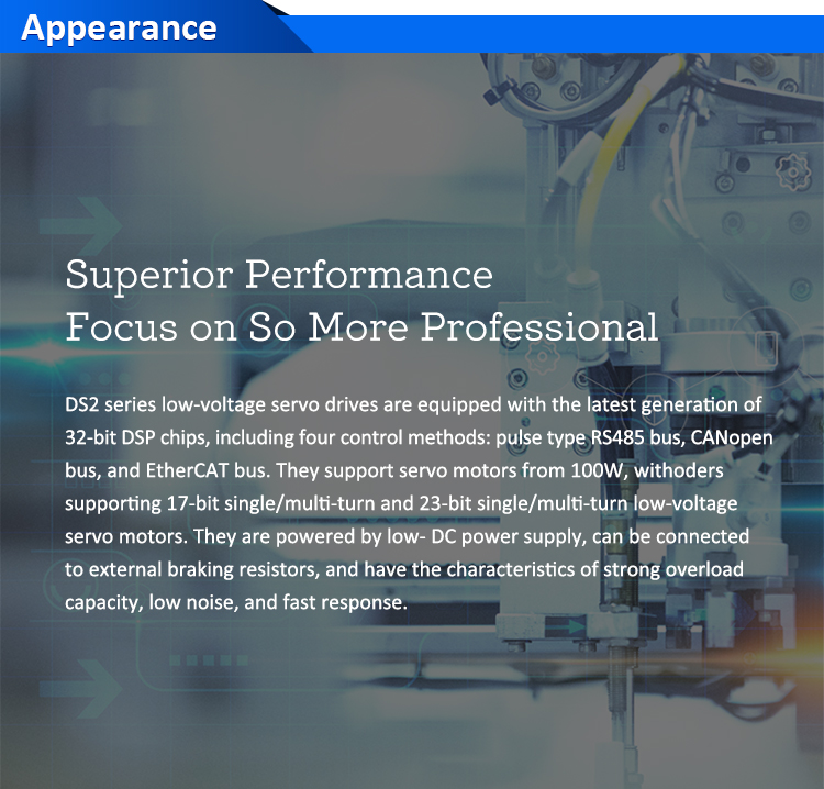 Pulssi/RS485/CANopen/EtherCAT 80 LAIPKOINEN 750 W:n matalajännitteinen tasavirtaservomoottorin ajurisarja